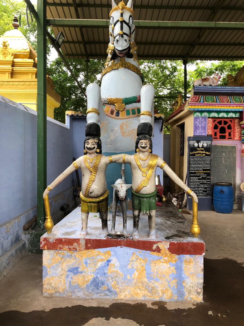 One such deity is Ayyanar Swamy, worshipped by families from fifty six nearby villages. A unique belief surrounds Bhairava, a dog, who serves as the guardian of Ayyanar, the main deity. Before approaching Ayyanar in the temple's sanctum, devotees must first seek Bhairava's permission, highlighting the deep reverence for the dog.