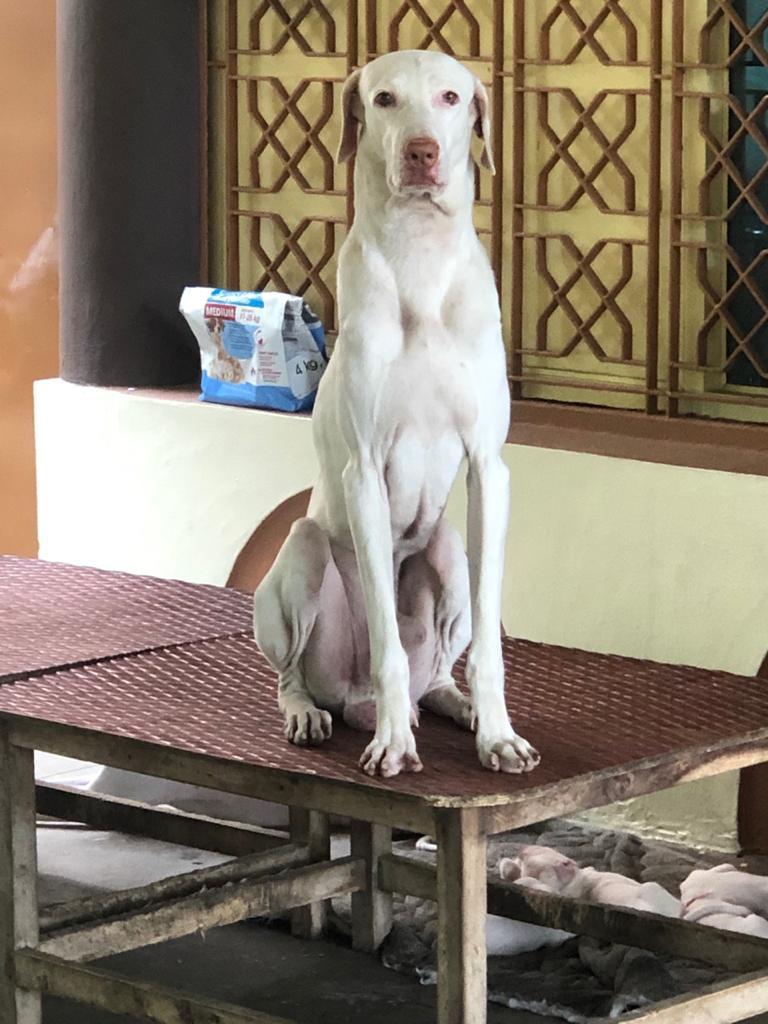 The Rajapalayam is well-suited for home environments. With its white coat, large head, and pinkish-orange nose, it is known as a "one-man dog," meaning it remains extremely loyal and faithful to its owner.
